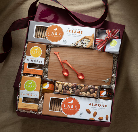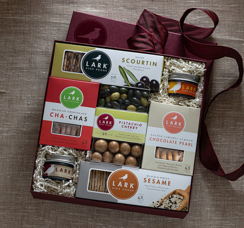 This elegant gift set features three fan favorite cookie flavors, Coconut Butter, Pistachio Cherry and Salted Caramel Chocolate Pearls, paired with our new Toasted Almond Savory Biscuits, chocolate malted milk balls, spiced almonds and chocolate strawberries. Also included are two stylish tumblers to enjoy a favorite glass of wine from.